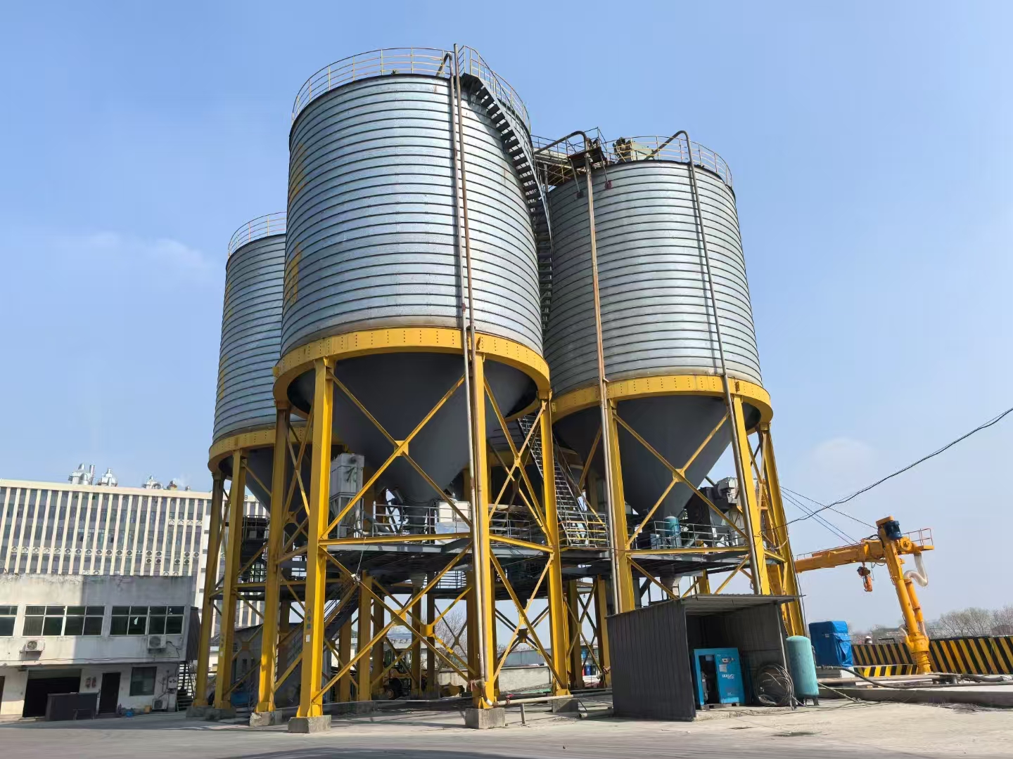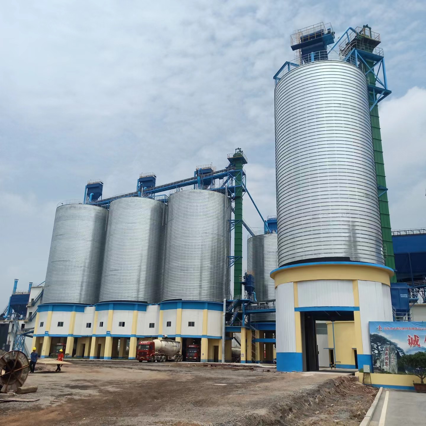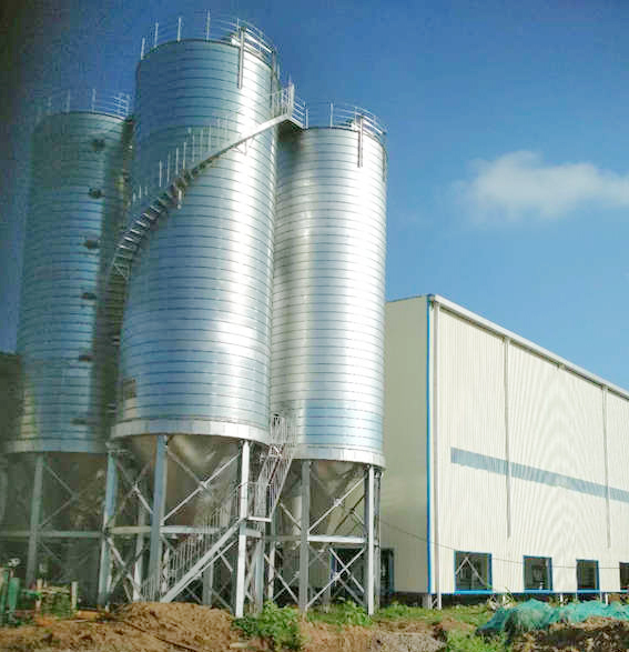 The bottom steel-supported full conical hopper discharge form features a structure where the entire structure above the ground is made of steel, with a steel conical hopper at the bottom. Ventilation devices can be installed on the hopper walls, preventing material accumulation inside the silo. It has a large volume ratio and fast turnover. National large-scale grain reserve depots and transfer stations in the storage fields of wheat, corn, soybeans, rice, etc.